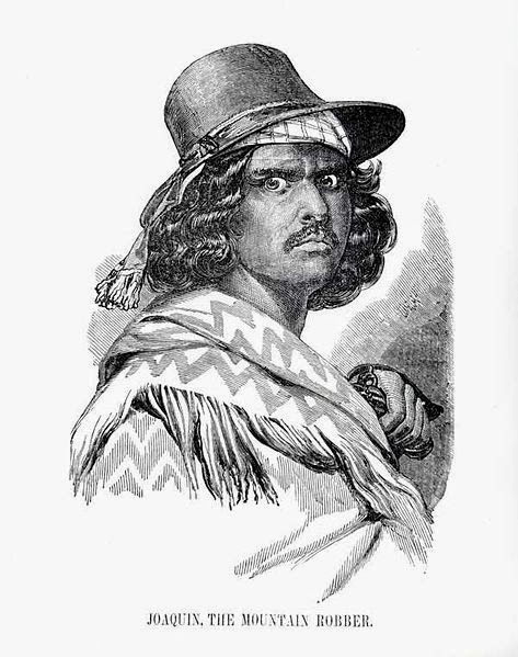 Joaquín Murrieta (c. 1829 - c. 1853) was a Mexican national who came to California during the gold rush. Legends and dime novels sprouted up after his death, making it difficult to discern the truth about his life. The most certain fact is that his actions (“outlawry”) made the new State of California very upset and spurred the incorporation of the California rangers. They hunted down and killed three men, one of whom may have been Murrieta. Murrieta’s presumed head then became part of a strange continuation of medieval relic worship. After serving as proof of Murrieta’s death so the rangers could receive the reward money, the head was preserved in brine and displayed for paying customers. Today, some people interpret Murrieta’s bandidos and their alleged marauding as resistance to Anglo dominance in California and an attempt to recuperate for Mexico the territories lost via the Treaty of Guadalupe Hidalgo. The 1998 movie The Mask of Zorro pays tribute to Murrieta’s contribution to the